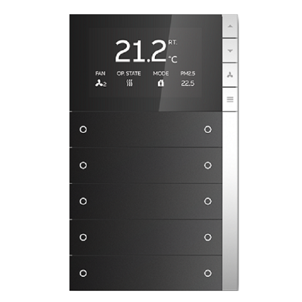 با طراحی صنعتی نوین و الهام گرفته از معماری اصیل، ترکیبی از زیبایی، دقت و کارایی را ارائه میدهند. این کلیدها با قابلیت کنترل سیستم های روشنایی دیمر، پرده های برقی؛ شیر برقی و سناریو، سرمایش و گرمایش و نمایشگر OLED مخفی، چراغهای LED محیطی با قابلیت تغییر رنگ و بدنه مقاوم، تجربهای لوکس و مدرن در کنترل دمای محیط فراهم میکنند. سیستم هوشمند این کلیدها امکان تنظیم دقیق دما، کاهش مصرف انرژی تا ۳۰٪ و کنترل از راه دور از طریق اپلیکیشن را میسر میسازد.