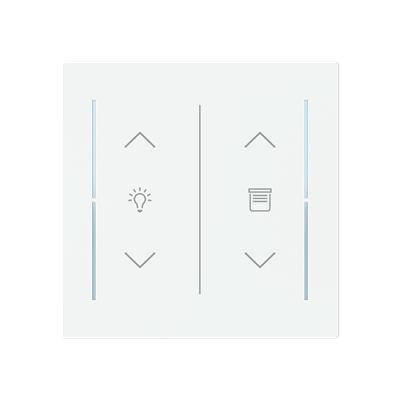 این مدل یک کاور لمسی (Labeling Field) ۲ پل راکری با یک آیکون دیمینگ و یک آیکون پرده (Dim/Blind Icon) از سری Trevion است و خود کلید مستقل محسوب نمیشود. لمس کاربر روی این پوشش به ماژول پایه KNX منتقل میشود و بدون اتصال به ماژول، هیچ عملکرد مستقلی ندارد.