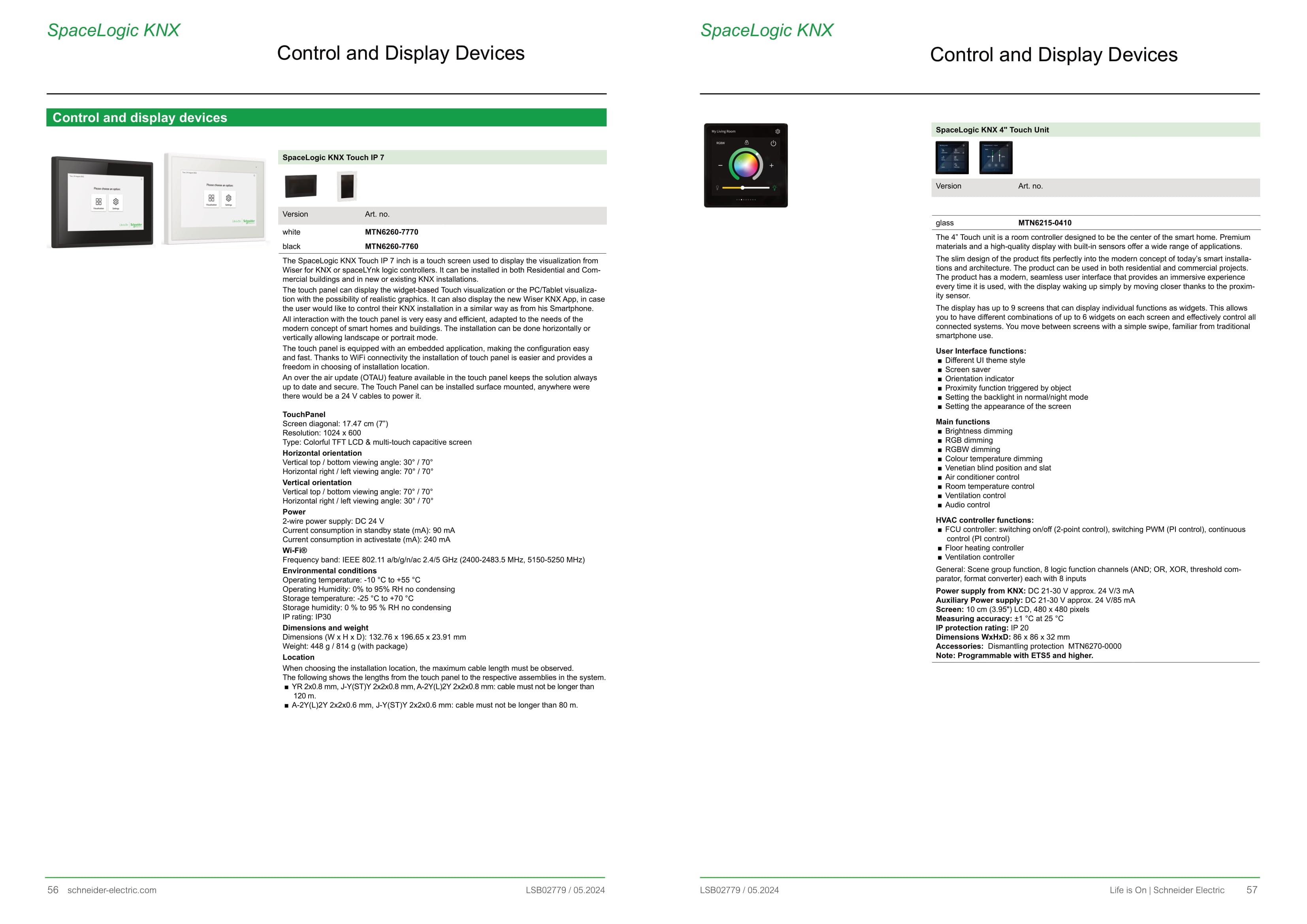 ویژگی‌های فنی تاچ پنل هوشمند 7 اینچ SpaceLogic برند اشنایدر (Schneider)