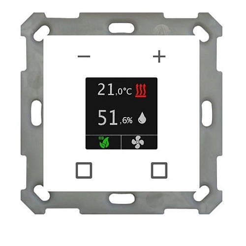 واحد توسعه دما، با پنل 63 میلی‌متری استاندارد سازگار است و نصب آسان در قوطی‌های استاندارد با فریم نصب همراه دارد. این محصول مخصوص استفاده در سیستم KNX و یکپارچه با خانه هوشمند طراحی شده است.