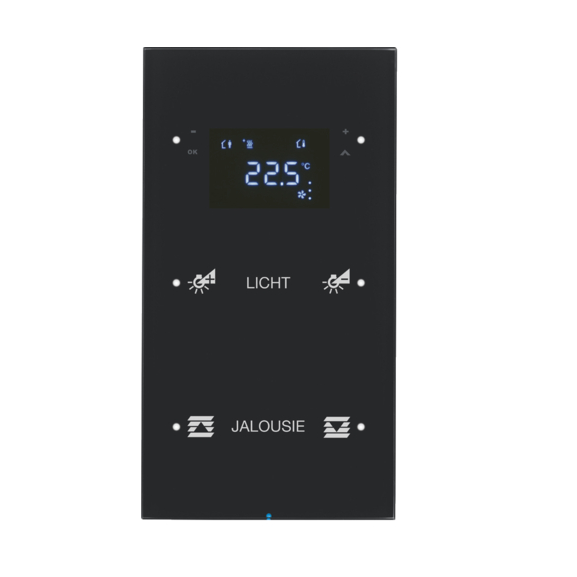 75642165 | Touch sensor 2gang with thermostat Display, integrated bus coupling unit, KNX - Berker R.1 - configured, glass black |
