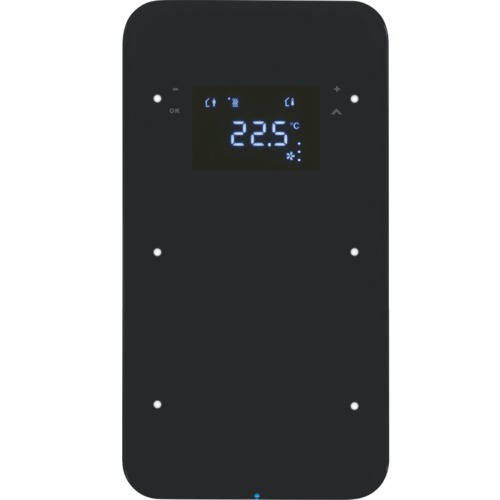 75642065 | Touch sensor 2gang with thermostat Display, integrated bus coupling unit, KNX - Berker R.1, glass black |