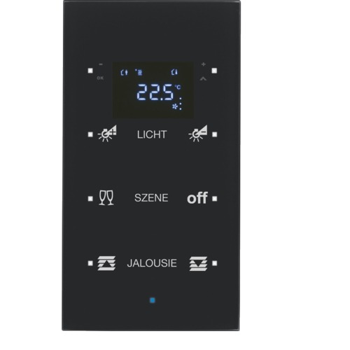 75643135 | KNX Glass sensor 3gang with thermostat Display, integrated bus coupling unit, KNX - Berker TS Sensor - configured, glass black |