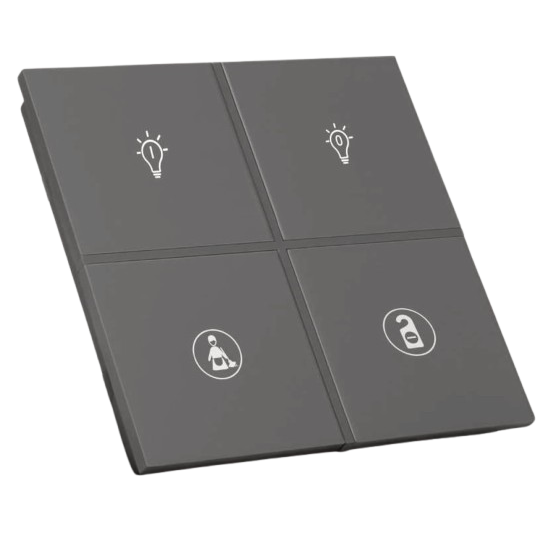 • LED بازخورد وضعیت: نمایش وضعیت روشنایی، پردهها،دیمینگ و سناریو بهصورت آنی.