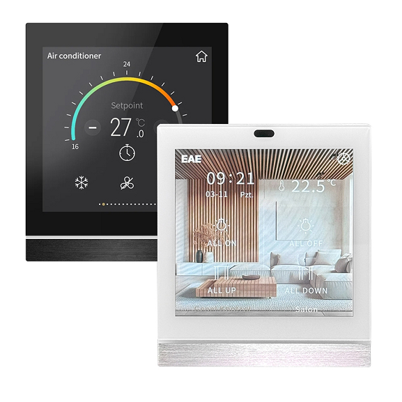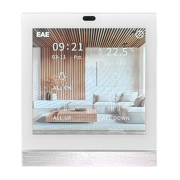 پنل لمسی هوشمند TD4 برند EAE، پنل لمسی ۴ اینچ همهکاره با طراحی مدرن و کاربری آسان است که کنترل کامل روشنایی، دما، کیفیت هوا، رطوبت و مصرف انرژی را در یک دستگاه واحد فراهم میکند. این پنل با حسگر نزدیکی، بازخورد لمسی و نمایشگر اطلاعات محیطی، تجربهای هوشمند و کاربرپسند ارائه میدهد.